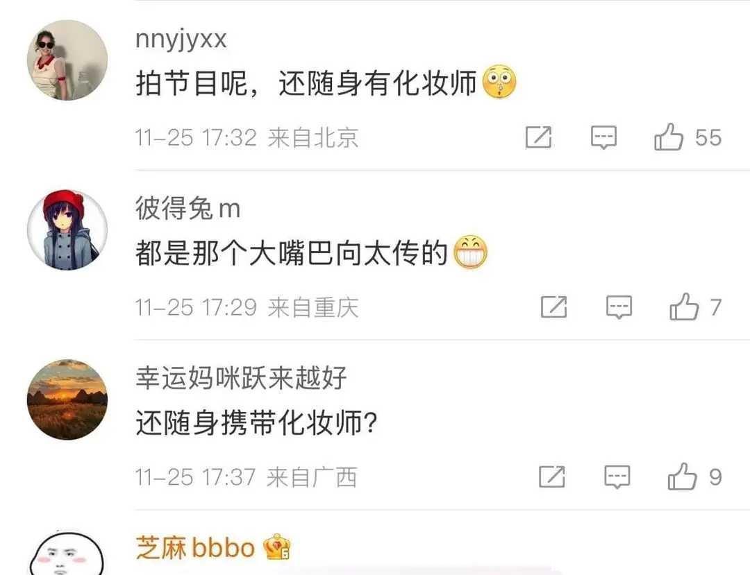 还有眼尖的网友发现窦骁旁边的座位上放着何超莲的包包,桌子上也堆满了何超莲的东西。再看看何超莲腿上披着毯子,一旁还让工作人员给她化妆。看着像是马上要去赶去工作,抽出一点时间陪着窦骁吃饭一般。